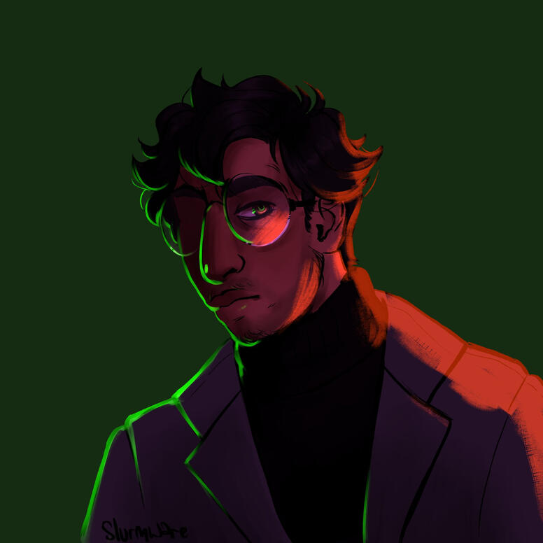 1000x1000, lower detail headshot w/ optional pride flag, flat color or transparent background